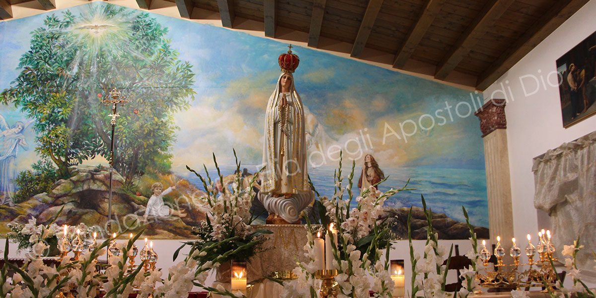Dopo giorni di temporali e piogge a catinelle,ecco finalmente una giornata radiosamente perfetta: brezza settembrina e sole raggiante che per due giorni non permise alle nuvole di addensarsi, aiutato dal venticello che le spingeva lontano. Uno splendido arco in ferro battuto adornato di nastri e coccarde, divideva il mondo da un angolo di Paradiso e i Pellegrini arrivati anche da molto lontano, lo intuirono appena varcata la soglia. Vennero accolti da una piazzetta festosa:dagli alberi alle cose ornati da nastri e coccarde e persino la ringhiera che indicava l’ingresso alla “Stalla” sfoggiava i suoi fregi colorati. Dentro la stalla, tutti gli occhi erano rivolti al grande altare ornato da un tripudio di fiori bianchi in enormi vasi, che, posati ad arte, facevano corona al trono regale pronto per accogliere la Vergine che sarebbe giunta di lì a poco. Splendide composizioni di roselline a grappolo dai tenui toni multicolori posati sulle balaustre tra enormi candelabri dalle mille luci, completavano il quadro meraviglioso in onore alla Regina di Fatima. Nulla era stato trascurato o dimenticato e sono certa che non era possibile ideare un effetto visivo migliore, destinato ad esprimere il pensiero artistico di fra Elia, assolutamente degno della nostra mamma celeste. La Madonna arrivò portata a spalla dai Mantellati, accompagnata dall’organo e canti, in un crescendo di emozioni e giubilo, Bella più della luna. La Messa solenne ebbe inizio all’ora stabilita officiata da don Marco e subito dopo la preghiera intensa e costante: il primo rosario, il secondo e tutti gli altri intervallati dall’organo che accompagnava i canti e momenti di meditazione silenziosa. A poco a poco i cuori si scaldarono,i sentimenti sinceri scaturiti da una fede profondaci elevarono in una dimensione d’amore collettivo che si poteva toccare rendendoci veramente fratelli in Cristo. E così tutta la notte. Giovani spose,meno giovani, gente che non aveva mai rinunciato al sonno,con gli occhi pieni di luce, raccontò di non essere nemmeno stanca e non andò nemmeno a riposare un’ora. Fra Elia pregava insieme a noi e ogni tanto ci parlava come è solito fare andando diritto al cuore. Alla fine ci disse che la Vergine ci avrebbe concesso tutte le Grazie richieste. Hallelujah. A Fatima nel 1917 la Vergine fu molto chiara:“Pregate il Rosario tutti i giorni, per ottenere la pace per il mondo e la fine delle guerre!”La Madonna diede una nuova efficacia alla recita del rosario,tale che non c’è nessun problema, non importa quanto difficile possa essere, o temporale o soprattutto spirituale,che non possa essere risolto con il Rosario. Come tutti sappiamo, il mondo va male, ma noi non possiamo rassegnarci a questa situazione. Lasciare che il male agisca indisturbato non sarebbe da Cristiani, perché sappiamo gli incredibili benefici che derivano dalla preghiera, in particolare dalla preghiera del Santo Rosario. Ricordiamone alcuni: